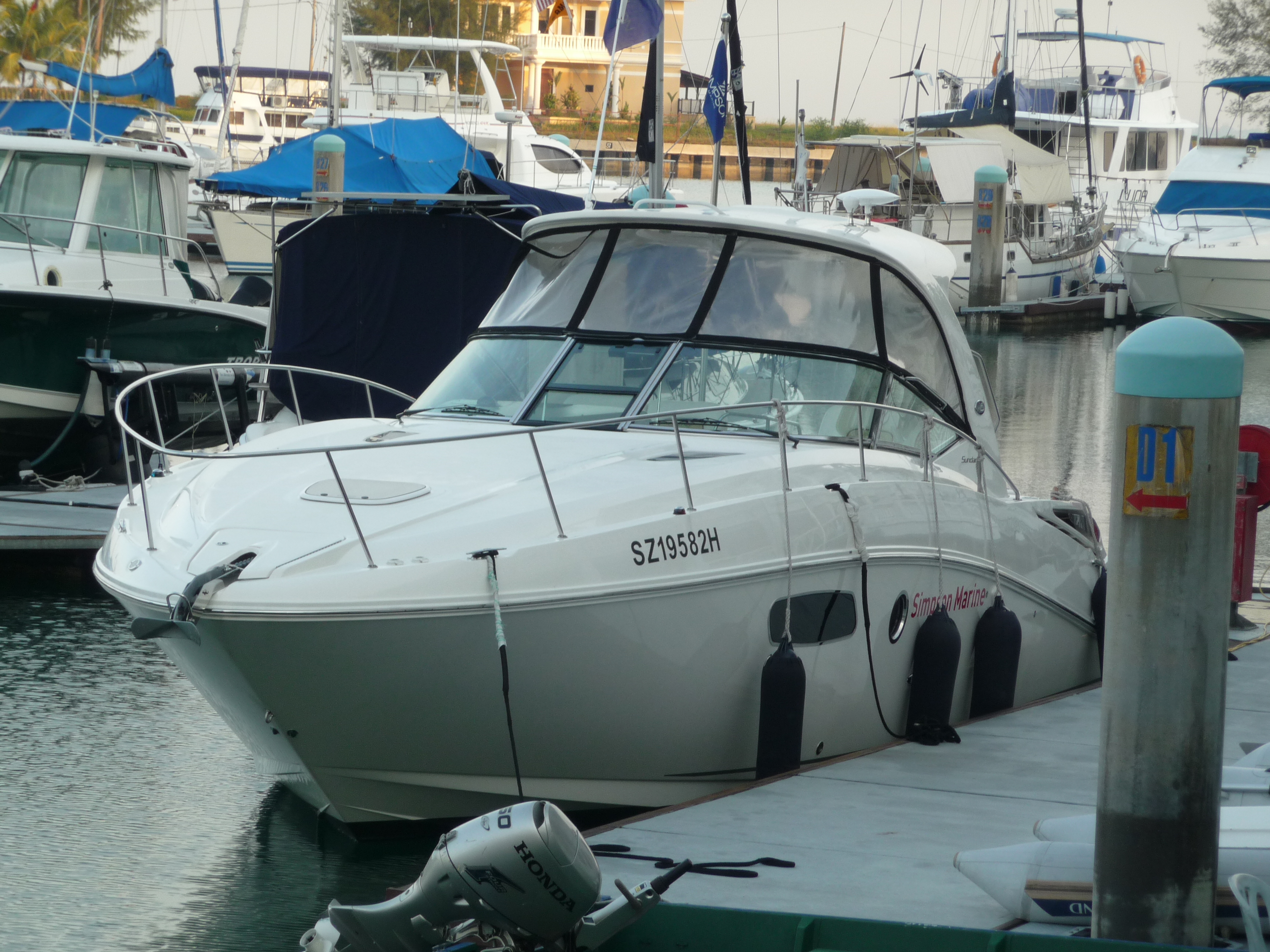 Our friends Simon and Ruby from SIMPSON Marine are also based here in delightful offices overlooking the Admiral Marina and the ocean, so we called in to say “Hello!” When they heard about us looking for some crew miles for our RYA certificates they offered us both places on a fabulous brand new SeaRay® 370 Sundancer® which had to be taken down to Raffles Marina and then to Marina One15° on Sentosa Island, the home of SIMPSON Marine in Singapore and finally to The Marina at Keppel Bay for the Boat Asia 2011 annual show which was held at Keppel Bay from May 12-15, 2011.