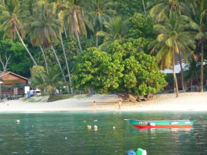 We spent a wonderful morning snorkelling at Pulau Tulai, also known as Coral Island, due to the plentiful coral, tropical fish and other marine life found at this very popular dive location. We were very pleased to note that this beautiful place is now part of a Marine Conservation Park, as indeed is the entire Pulau Tioman area, which means, amongst other things, that visiting boats must use moorings and not heavy anchors that could damage the delicate coral. A lot of the coral we enjoyed had been severely damaged by the old practice used by traditional fishermen of “dynamiting” the area. This practice of using high-explosives to literally blow the fish out of the water is a highly effective fishing technique as all fish in the immediate area are stunned and float to the surface for easy collection. Unfortunately it is also extraordinarily damaging to the coral much of which has been smashed and killed. The good news is that the old practices around Pulau Tioman have been stopped and the environment is showing definite signs of recovery although it will be a long, slow process. This underlines the need for everyone to practice constant vigilance to prevent any further environmental degradation.