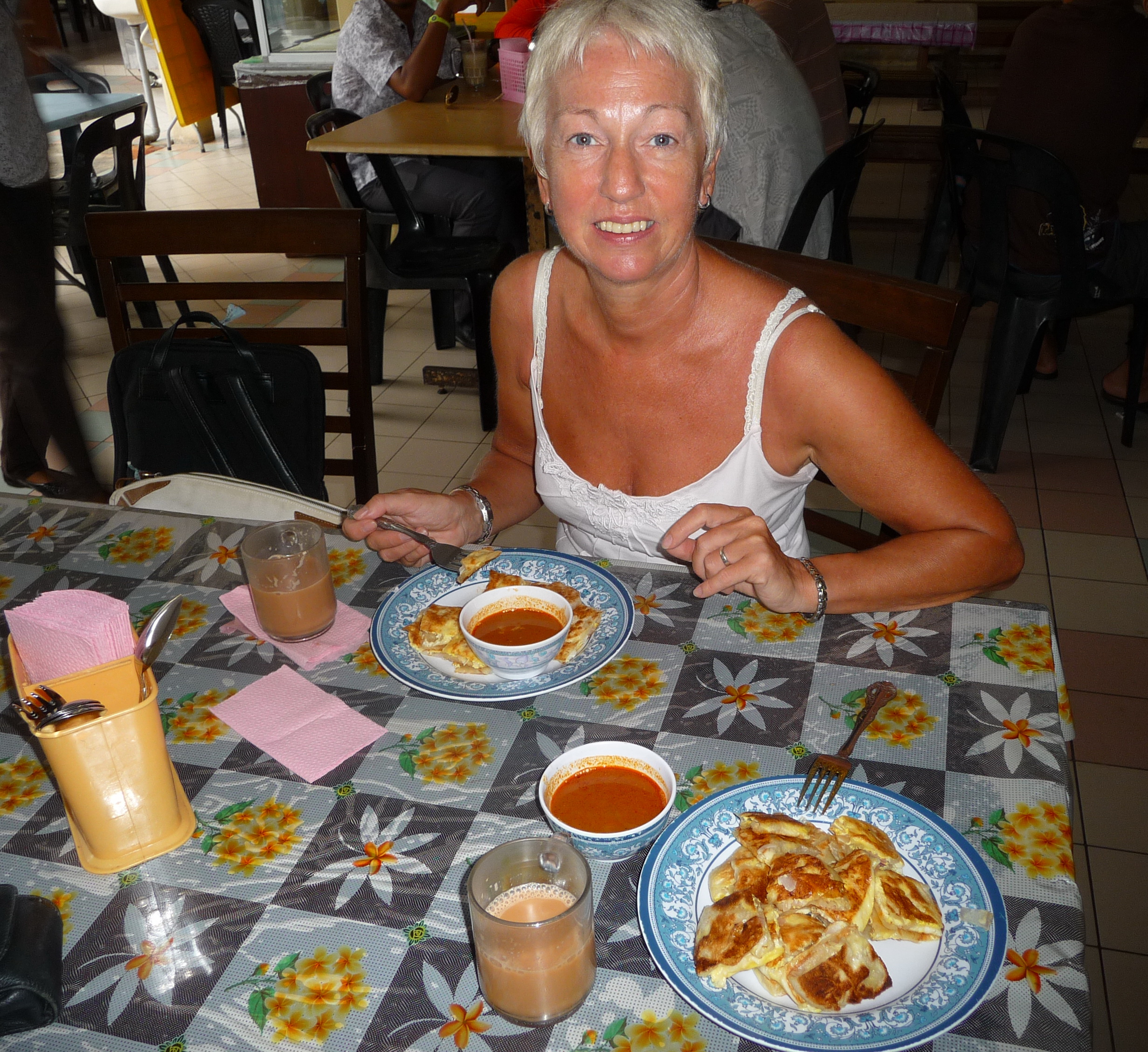 Later we motored the few miles back to the marina where we spent a final night in the luxury of our extremely comfortable cabin complete with its full-sized en-suite, one of four such luxury cabins found on board. Then we were up at dawn the next morning in order to check in at the airport at eight am, go to the local Makan for delicious “Roti Canai” and “Teh Tarik kurang manis” before boarding for our flight home.