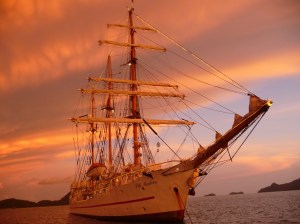 On the return journey to the marina we enjoyed one of Langkawi’s famous and truly magnificent sunsets and were privileged to get a close up view of the magnificent barquentine (three masted) Lili Marleen. As a special treat she “lit up” for us and welcomed us with a few blasts from her tremulous ships horn. Altogether this sounds like a fairy tale ending to a very special day in paradise……but it gets even better! Eva was sufficiently impressed with my navigation and ship handling skills and desperate for a day off now and then. Much to my delight, warmly supported by a very happy wife, we now enjoy a week or so as the surrogate “Captain” of “Damai Indah” whenever Eva wants or needs a day or two to herself. Now that is the perfect end to a perfect day and that is my story!