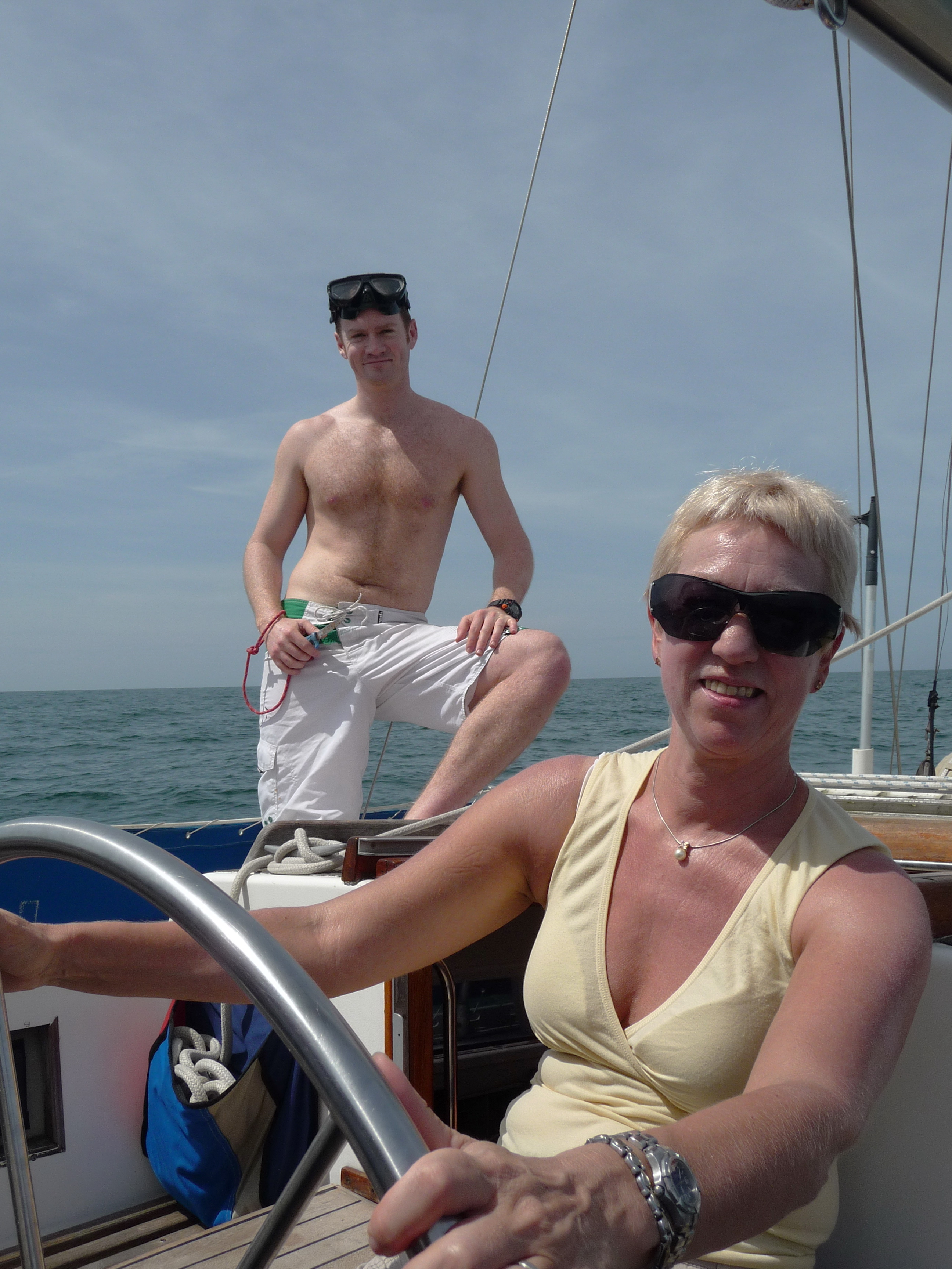 We then had some lunch at the Indian restaurant at the marina and headed out to sea by sailing out the narrow channel and tacking our way back and forth across the channel out to sea until we made it! Once out to sea we practiced “Man-Overboard” (MOB) rescues, crash stops, tacking and gibing in order to reach a MOB or a mooring buoy using sail only. The following day the procedure was reversed and we went out to sea in the morning and did marina manoeuvrings in the afternoon. As there were only the three of us doing all this practice we all became very proficient in boat handling and our confidence and expertise grew exponentially under the skilled attention and instruction of “the Admiral”, a great coach and mentor in all matters to do with sailing.