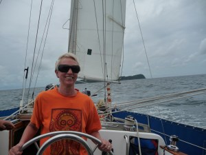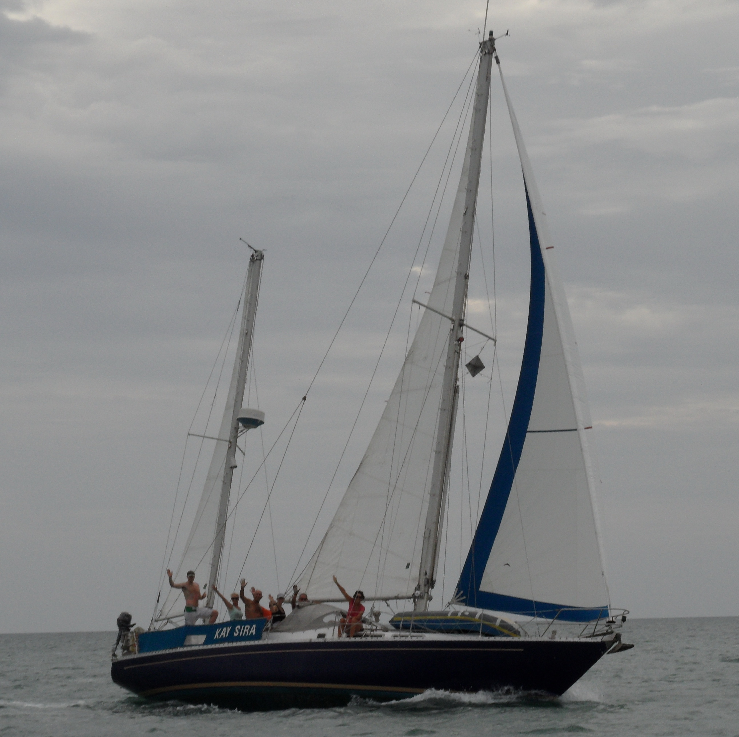 Lee Rhodes is the skipper for the first leg of our journey from Penang to Port Dickson. After studying the tide charts and the other reference material available, Lee decided that this trip would get the best assistance from wind and tide if we left Penang at around 5am, so it was up at 0430 hours to get the good ship “Kay Sira” ready for the voyage. We were away in good time and ran shifts of three hours on, three hours off all the way to PD. I am Lee’s 1st mate on this leg and the other watch will consist of Frazer and Gary, with Barry, the admiral, overseeing all. After some hours of motor-sailing we were able to set sail and enjoyed a gentle breeze most of the morning.